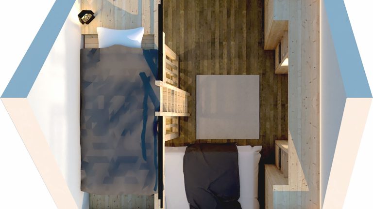 - Aménager un espace nuit supplémentaire grâce à l’installation d’une cloison dans l’espace détente, permettant d’augmenter la capacité d’accueil.
