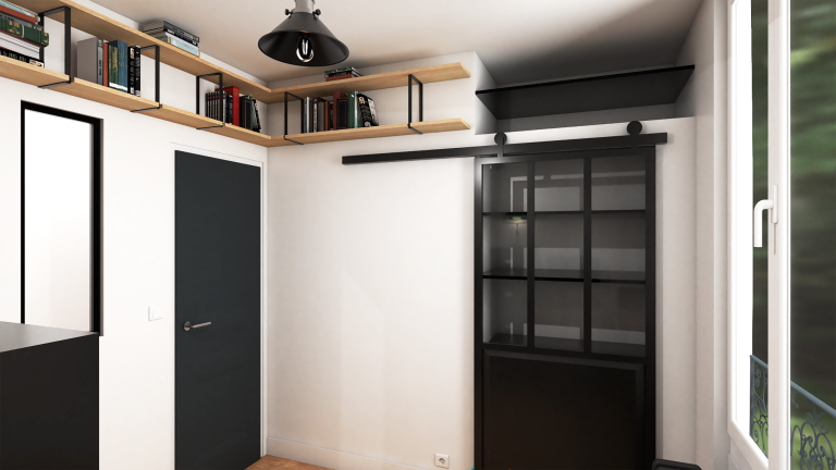 - Mise en valeur d’un placard existant par l’installation d’une porte coulissante type atelier ;