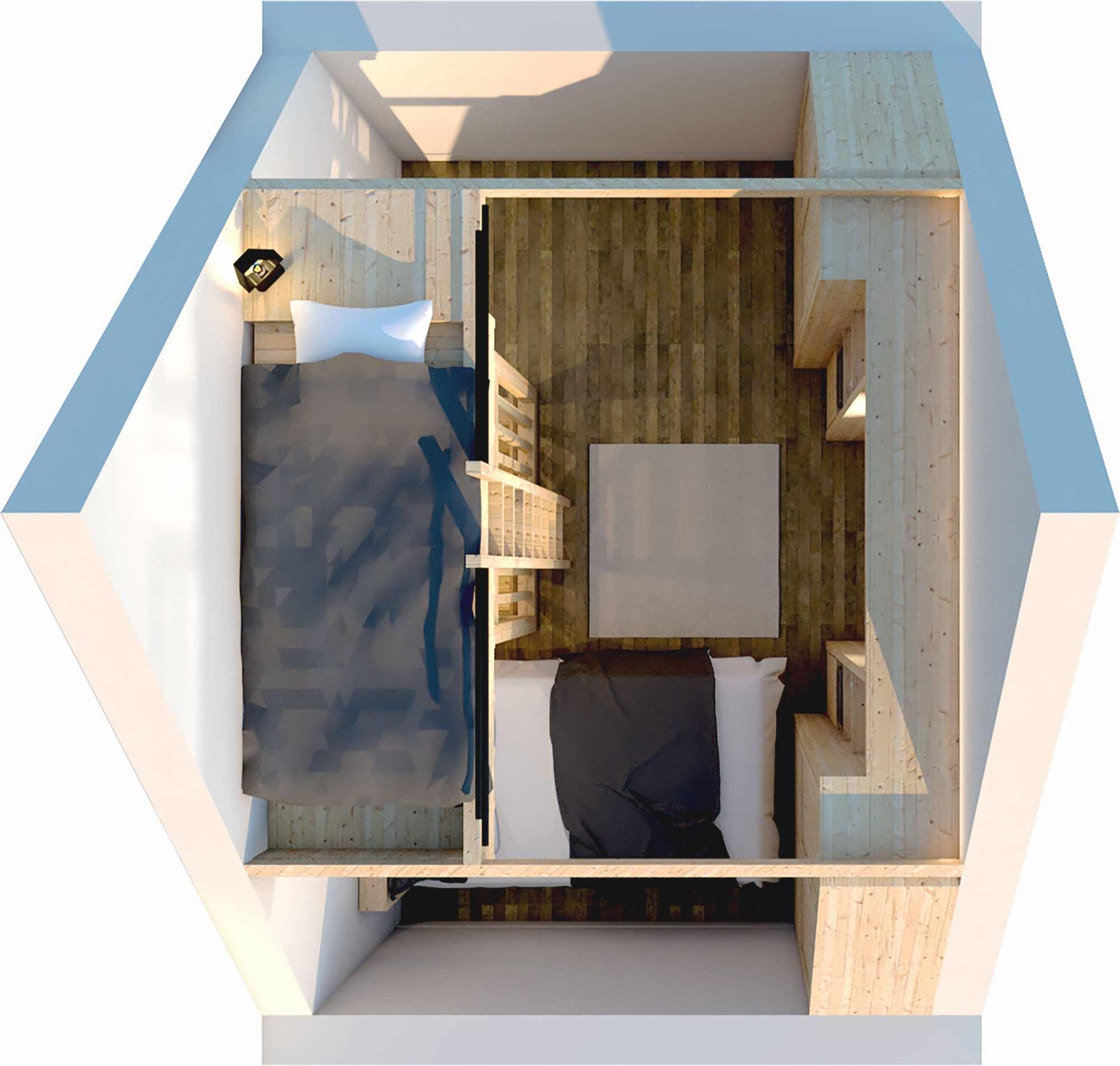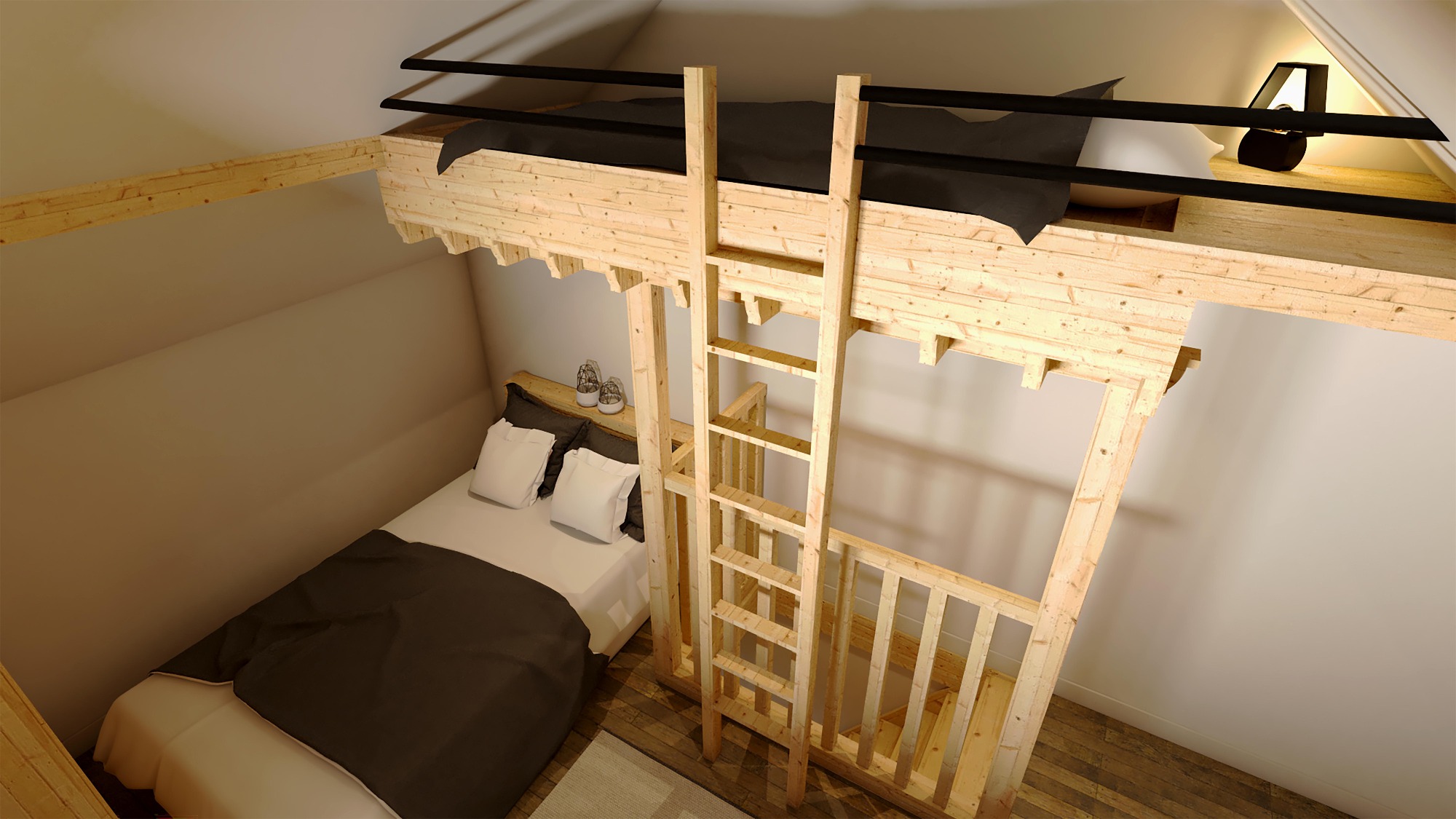 - Aménager un espace nuit supplémentaire grâce à l’installation d’une cloison dans l’espace détente, permettant d’augmenter la capacité d’accueil.