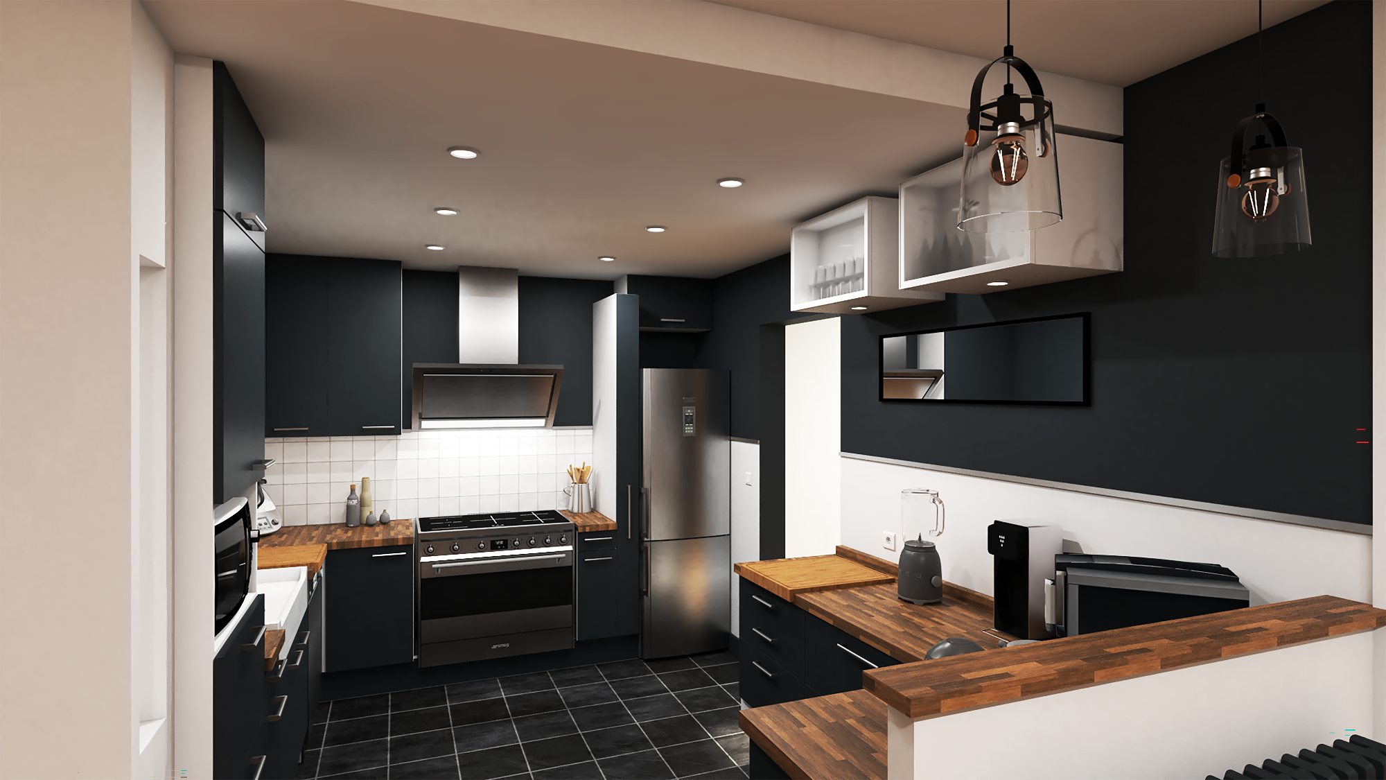 - Créer une cuisine fonctionnelle et conviviale intégrée à l’espace de vie principal, afin de renforcer la fluidité entre les zones repas et détente.